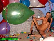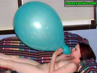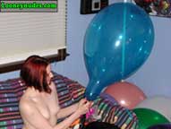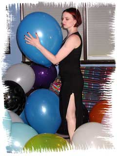 Returning home from school to study, Sarah tries her best to concentrate, but the balloons constantly taunt her to drop her books and play. Surrounded by the tightly inflated helium and air-filled balloons, Sarah can no longer resist. She drops the books and begins her attack. She tries to teach the balloons a lesson by overinflating one of them until it explodes in the hope that it will make the other balloons behave. Some further sitting by her tight butt and squeezing with her sharp nails still doen't teach the balloon to behave. Sarah takes the next step and removes her dress to expose her beautiful breasts. This seems to calm the balloons more, but alas it is just a tease. With her clothes removed, Sarah feels naughty and begins her discipline. Letting her hair down she puts a balloon to her lips and slowly tortures it until one more hot blow of air makes it explode. After the loud bang, more overinflation, sitting, stomping and squeezing takes place. After a quick break, Sarah begins to tease the balloons again with her gorgeous body by rubbing the balloons all over her. If only the balloons had been good to her in the beginning. Instead, now they must all be popped. Sarah's highheels become deadly weapons, her lips and cheeks cause devastation. Her nails become razors and her butt a crushing device. When it is all done, the only thing left for Sarah to do is cover her body with the broken shards. Be sure to click on the film reel below for some sample clips from the video.