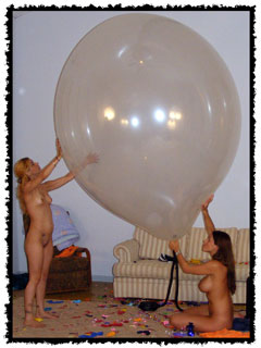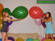 After Megan's solo balloon adventure in our last video, she decides it would be fun to bring her friend, Gloria, along on her next. Gloria, of course, is no stranger to the joys of big balloon explosions. She has done many blow to pops on her own for fun, so she is more than happy to join Megan and make some big booms. The girls are super sexy together doing blow to pop races, sit popping, working the helium tank and just going plain crazy doing mass blow to pops on the pumps. And we can't forget to mention the number of giant balloons in this video. The girls show no fear and are amazed and the balloons get bigger than they are before the explode. Be sure to click on the film reel below for some sample clips from the video.