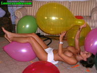 Megan exhudes powerful sexuality and amazing balloon popping skills. The big booms, and we mean big, rock her world. No balloon is too big, no kind of popping is too extreme and no pop is too loud. Megan starts off popping a couple 16"s and quickly graduates to bigger balloon, and then the cloths must come off. She works her luscious lips surrounding the balloons lips as she blows to pop. Her hands grip tight around the pump as it pushes air into the ever expanding latex. Her nails dig deep piercing the tight skin of the balloons. Her curved ass pushes deep into the inflated balloons flexing beyond capacity. All in pursuit of more exciting and extreme ways to get off and causing deafening booms. Be sure to click on the film reel below for some sample clips from the video.