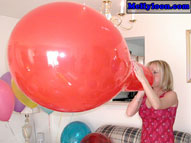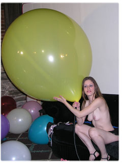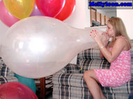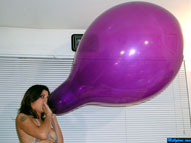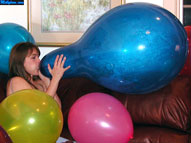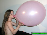 Maya has been popping balloons for people's enjoyment for a long time, but this is her first venture into film. Her experience is evident and her love for the balloon explosions is without question. She warms thing up with some pump blow to pop, just to get into the groove of the big booms. She goes through some 16" balloons and moves up into the realm of the 40" variety. When just as her balloon popping groove gets on, the clothes come off and she starts using her own lungs and lips to make balloons pop. First a white blow to pop. Then a pink, then a yellow, then a teal, then purple, then another pink, then a peach. You would think Maya, would run out of breath, but no. She keeps going. A lavender blow to pop. A burgendy blow to pop. There are so many blow to pops you have to wonder how she keeps going. There is more than enough to keep any blow to pop fan happy. In addition, Maya performs some great sit pops, squeeze pops, and stomping. She laughs at every boom and can't wait until the next. Click on the film real for a nice preview trailer of the movie.