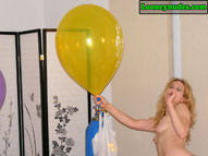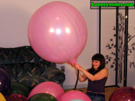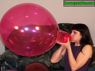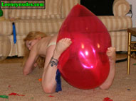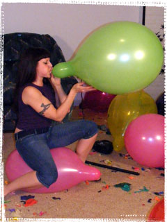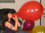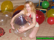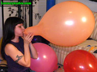 Beverly is of course a total popping master. What you may not know though is how she likes to be the one in control of all the popping action and not the balloons themselves. She doesn't appreciate those spontaneous pops because it is an opportunity for her that is missed. Thus the risk one takes when you push balloons beyond their limits. And when the balloons do pop at their loudest, the noise is erotic as it shakes the room. The echos are very exciting to her, and the tighter she can blow the balloons, the louder and better their pops become. And how she just loves those long necks. According to her own words, "It means the balloons swell up really nice and tight giving her erotic thoughts. And when the final blow causes the intense bursting, she hopes the balloon dissolves into shreds that rain down on her. The possible danger of getting smacked with a flying piece of latex adds sexual tension to the pop. And this time around, Beverly adds a unique popping weapon to her arsenal, a long, decorative hat pin. With the hat pin place gently between lips and teeth, beverly floats the balloons high above her head. As the balloon reaches its apex and begins to decend, Beverly arches her head and back backwards and watches as the balloons slowly falls toward the sharp decorative weapon. When the tight latex eventually falls onto the sharp point, the balloons explodes and the pieces fall all over Beverly. The balloons getting so close to her body and then exploding is a sexual rush for Beverly that she simply can't get enough of. This video is full of such intense and erotic popping you simply can't afford to miss it. Click on the film real for a nice preview trailer of the movie.