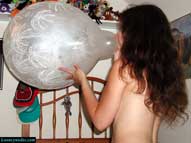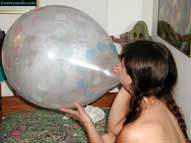 Lena starts off her latest video by letting the viewer know, "The only thing I love more than being surrounded by big balloons, is bursting balloons". Starting off with her hair in pigtails and lying on her bed, Lena does a bit of riding and squeeze popping before putting her puffy cheeks to work blowing to pop a polka-dotted Qualatex. Lena is very playful while riding, squeezing and blowing to pop her balloons. She loves talking to and telling them how happy she gets when they burst for her. All this laughing, giggling and popping makes Lena a bit hot and horny, so the clothes have to come off. After some rapid blow to pop action using the pump, Lena sits on a balloon to relax, and for fun squeeze pops a few more balloons over her head before putting her cheeks and lungs back to work. Some blowing, than hugging, followed by more blows and than some talking to the balloon, Lena really enjoys making the most out of the blow to pop experience. By the time the last exhale causes an explosion of shards, Lena is very satisfied. After one more blow to pop, Lena lets her hair down and puts on some sexy red, thigh-high boots with stiletto heels to get fine tuned for more popping. The heels, especially, turn out to be quite the fasion accessory, and are used very efficiently by Lena for puncturing the tight, thin, latex of the balloons. Soon though, it is back to some rapid inflation to popping using the pump. Lena just loves the sound of the rushing air filling the hollow sphere of the latex, followed by the ear-shattering booms that result. However, nothing beats the feel of a good blow to pop using her own lung power, where she savors every moment as the balloon gets bigger with every blow right up to the big bang. And a Qualatex Spray with fireworks, will sound just like a bomb went off. Be sure to click on the film reel below for a sample clip from the video that will blow your mind.